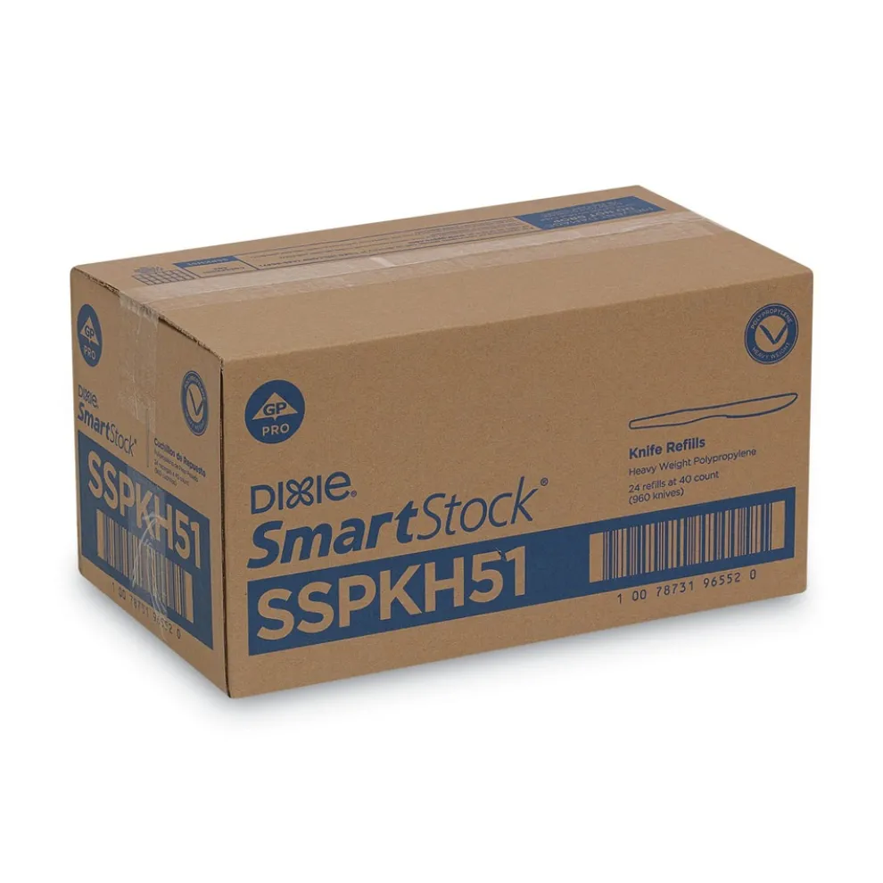 Pre-counted refill packs make restocking efficient and easy. For use with select SmartStock Cutlery Dispensers (sold separately). Sturdy cutlery provides reliable service. Sleek and efficient, Dixie Ultra SmartStock Plastic Cutlery Refills are ideal for Dixie Ultra SmartStock Dispensers.