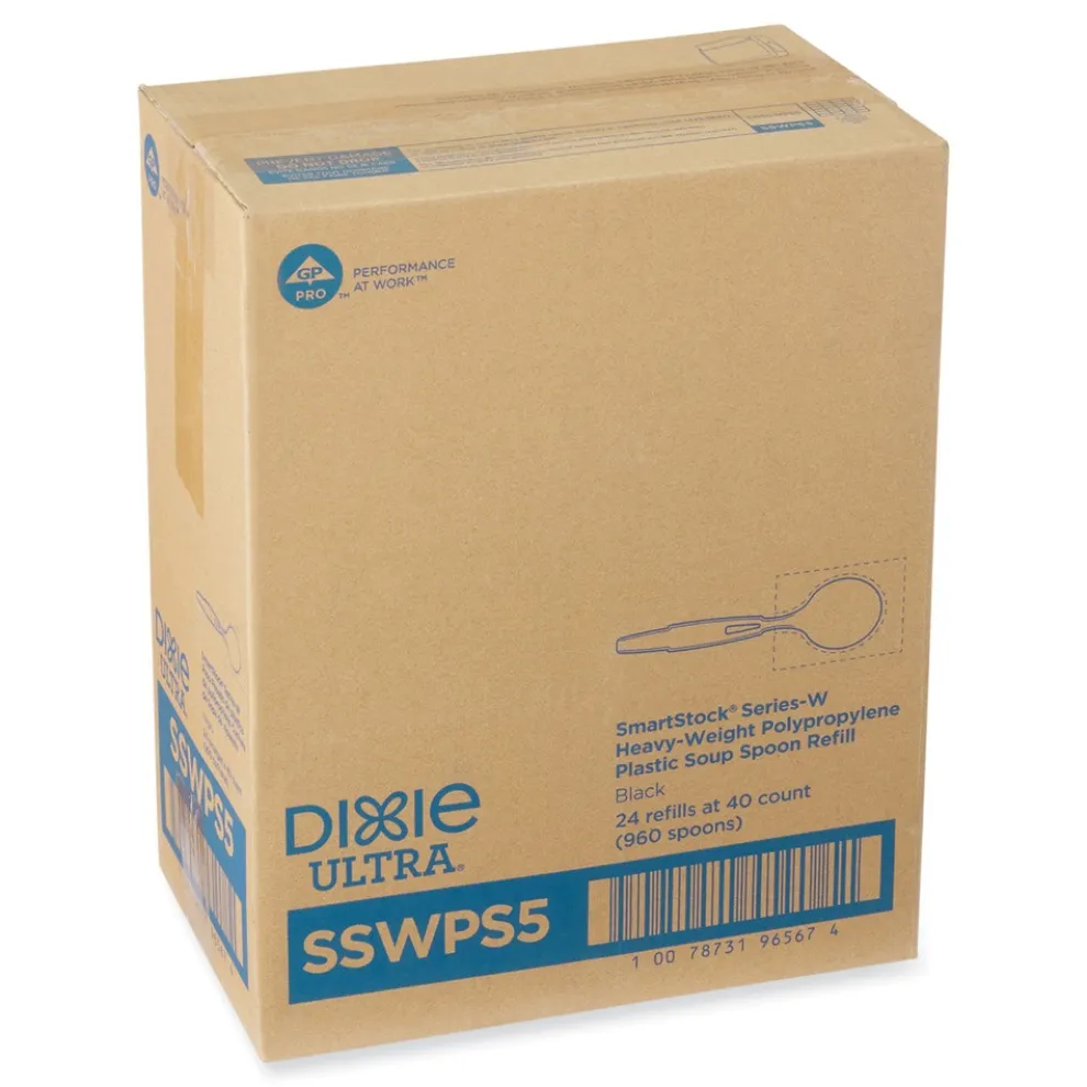 Dixie SSWPS5 SmartStock Wrapped Heavyweight Cutlery Soup Spoos Refill – Black (960/Carton)