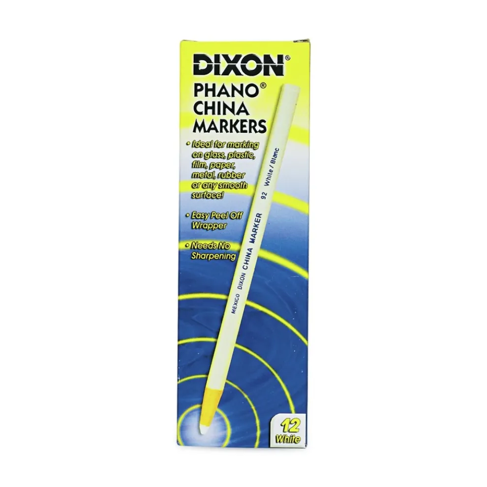 Ideal for marking on glass, plastic, film and most surfaces. Easily wipes away clean from smooth surfaces. Paper-wrapped with tear string sharpening.