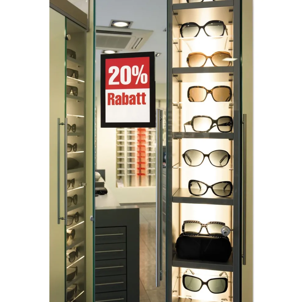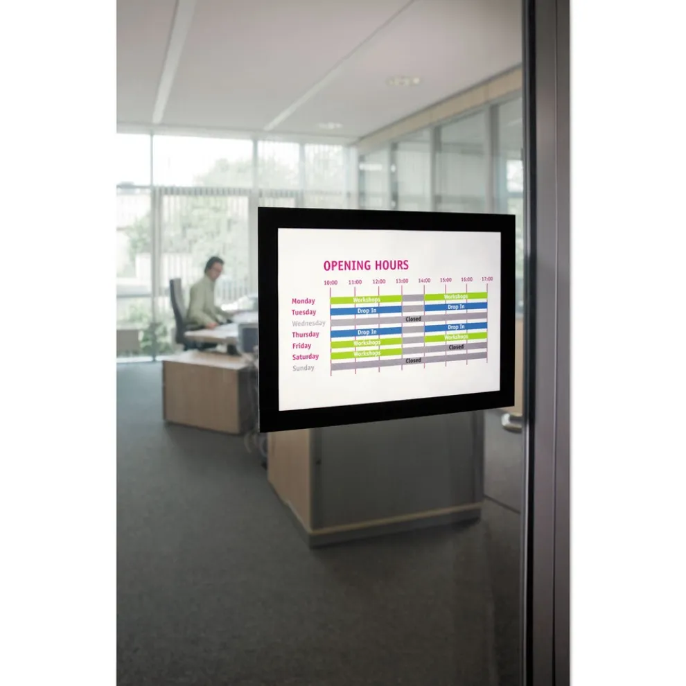 Display different messages simultaneously with double-sided visibility; perfect for storefronts facing both indoor and outdoor spaces, windows, meeting rooms, glass doors, and anywhere signage needs to be seen from both directions