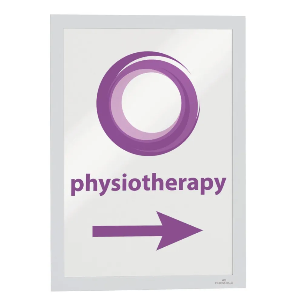 The Infoframe DURAFRAME is a self-adhesive, letter-size format info-frame. It presents information in a high-quality and professional way with quick insertion and replacement of documents via a hinged magnetic frame. The sign is easy to attach to smooth, stable surfaces without the need for tools and can removed again. It is perfect for letter-size format documents such as room plans, orientation information and offers. It also features readability from both sides of glass thanks to an identical frame look on both sides. It can be used in portrait and landscape formats, and fits documents up to 9.5 x 12.