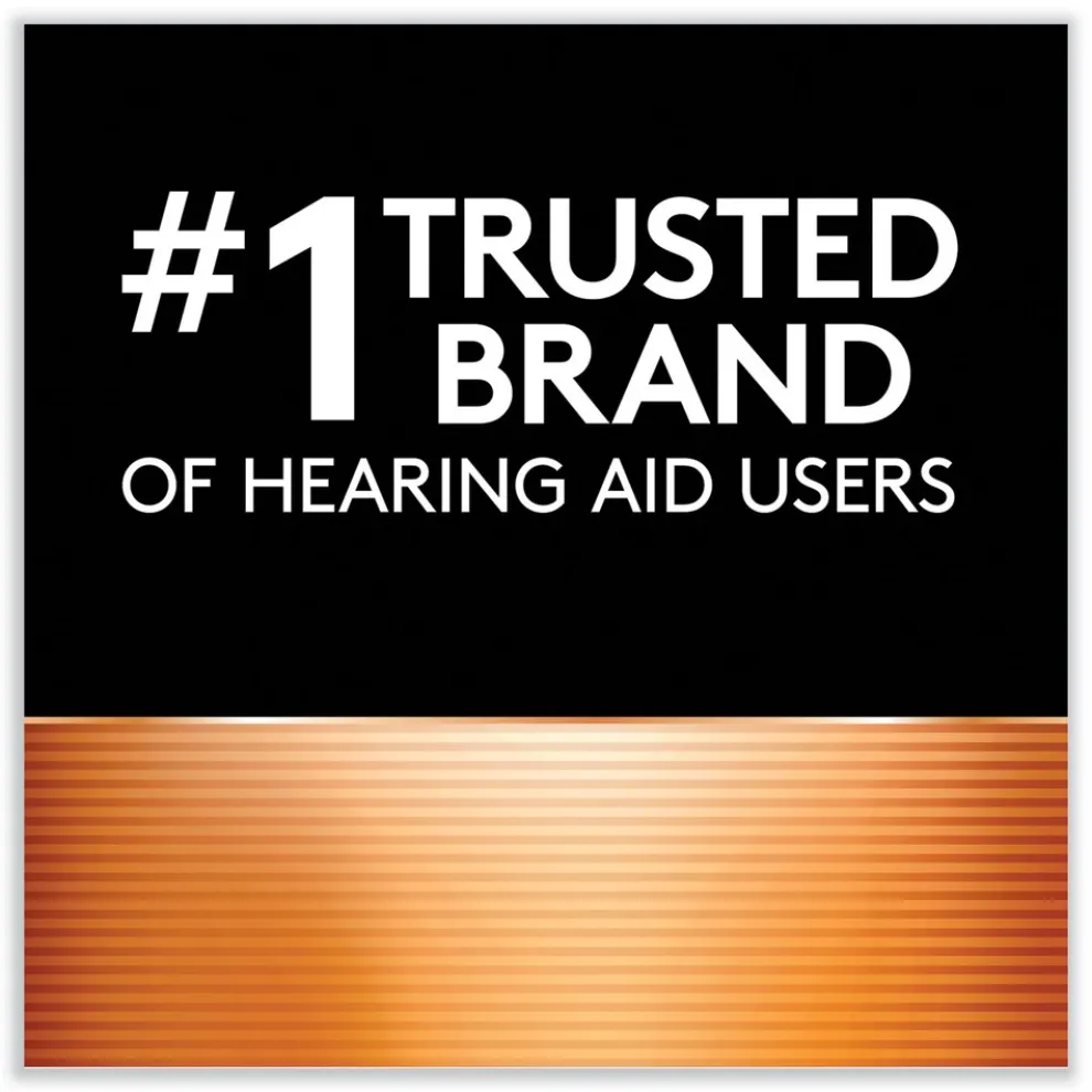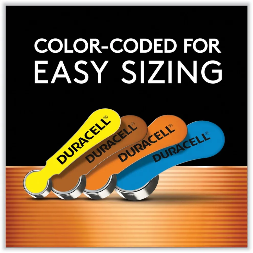 Hear every moment with long-lasting power in Duracell Hearing Aid Batteries. The Duracell Hearing Aid battery tab is extra-long, so it’s simple to handle, and its packaging is easy to open. Batteries are color-coded, making it easy to find the size that’s right for you. You get peace of mind knowing Duracell is the no. 1 recommended by the Arthritis Foundation for ease of use. Plus, Duracell Hearing Aid Batteries will last up to four years in storage.