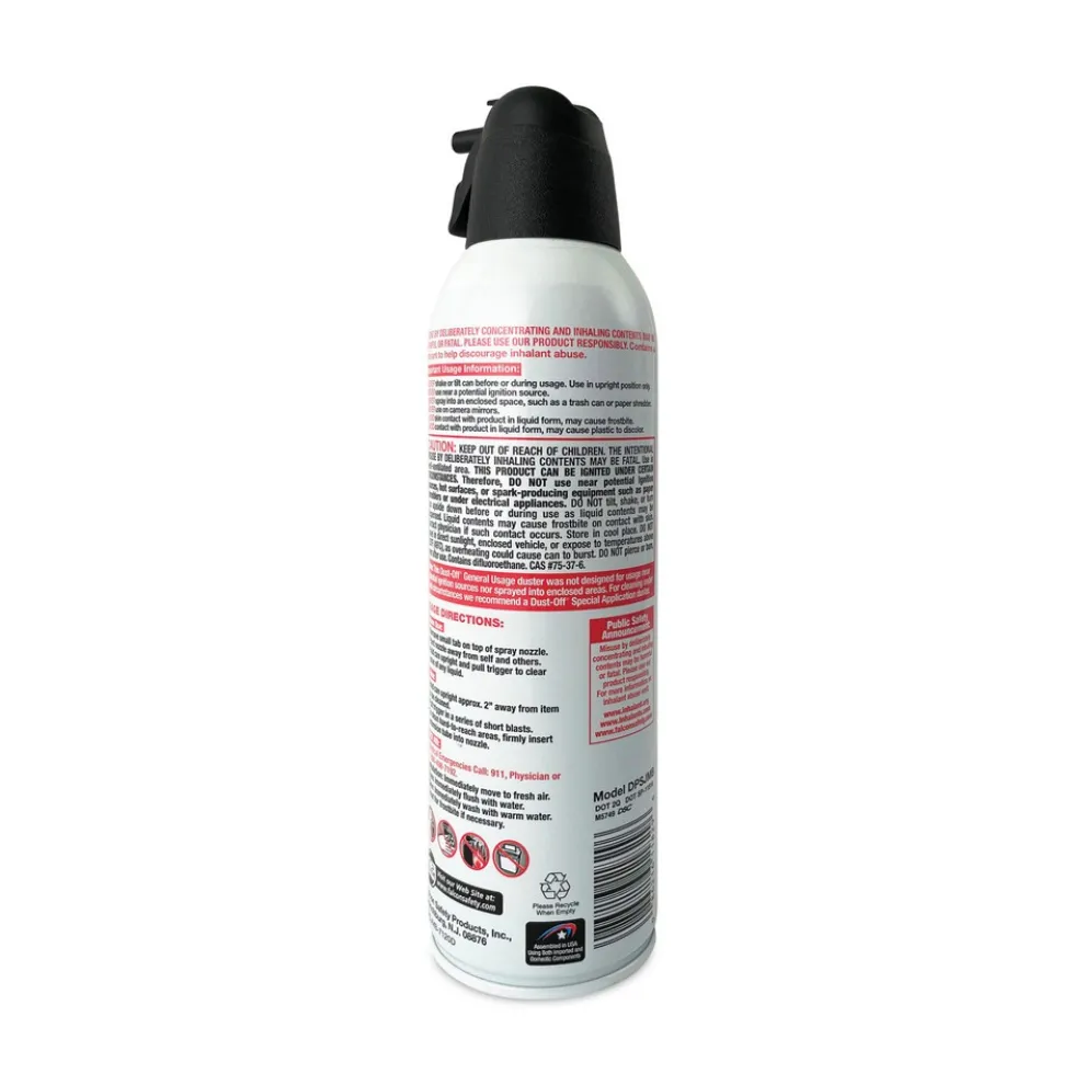 Dust-Off disposable dusters provide potent dust-removing power for practically any task. Ideal for cleaning technology like keyboards, laptops and CPUs. But it’s not just for electronics! Dust-Off dusters are also great for cleaning items in the home such as collectibles, window blinds, lamp shades, craft projects and sewing machines. Each duster includes extension tube to get in hard-to-reach places. Contains a bitterant to help discourage inhalant abuse.