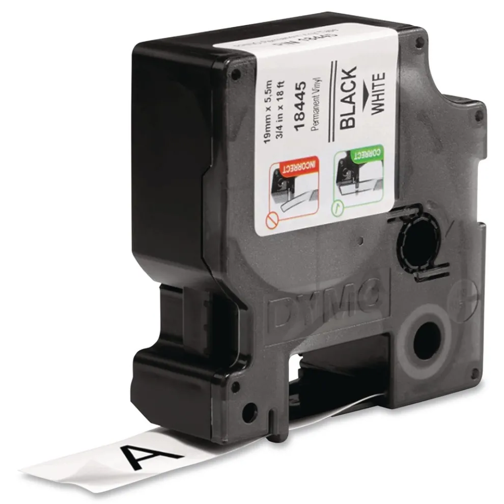 DYMO 18445 0.75 in. x 18 ft. Rhino Permanent Vinyl Industrial Label Tape – White/Black Print