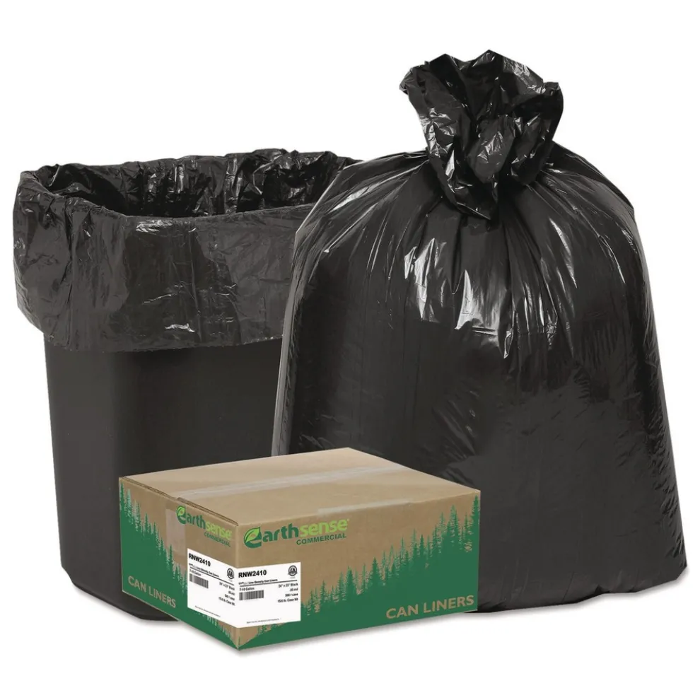 Earthsense Commercial 1506839 24 in. x 23 in. 10-Gallon 0.85 mil. Linear Low Density Recycled Can Liners – Black (500/Carton)