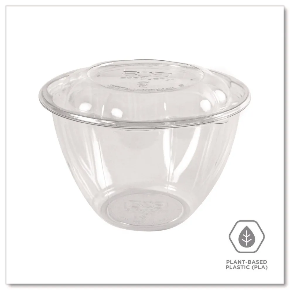 Eco-Products EP-SB48 48 oz. Renewable and Compostable Plastic Salad Bowls with Lids – Clear (150/Carton)