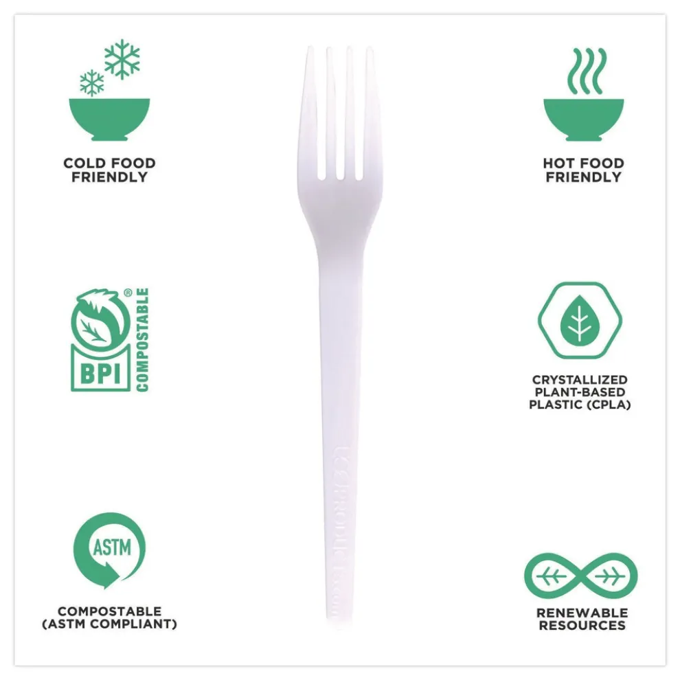 Eco-Products EP-S017 Plantware CPLA Cutlery Fork – White (1000/Carton)