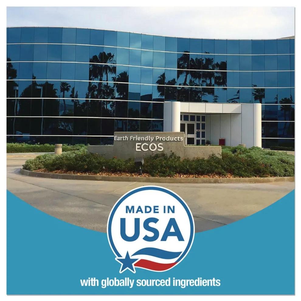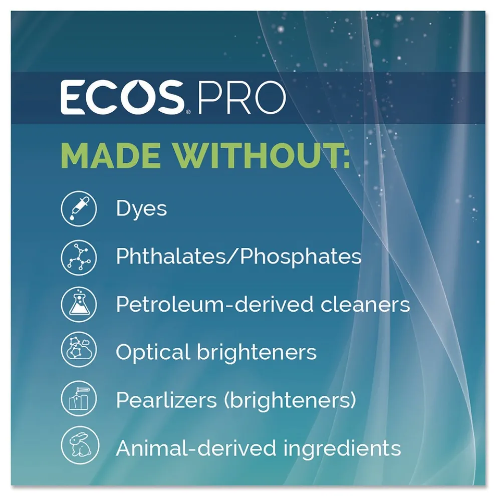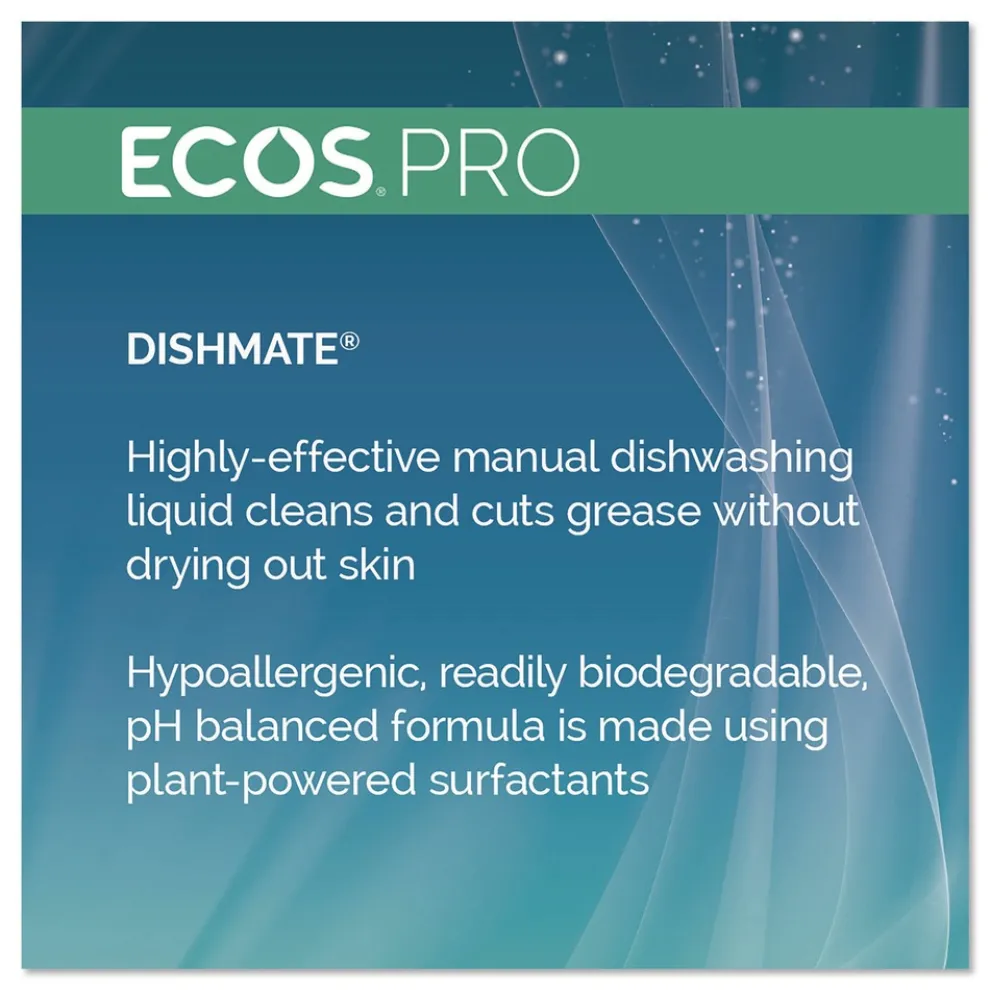 This highly effective ECOS PRO Dishmate manual dishwashing liquid cleans and cuts grease without drying out skin. The unique formulation leaves less residue on dishes for a quicker rinse time and reduction in water usage. The hypoallergenic, pH-balanced formula is made using sustainable, plant-derived surfactants. The product is free of dyes and is gray water and septic safe. Not tested on animals. Manufactured in a facility that is LEED Zero Carbon, LEED Zero Waste and LEED Zero Energy Certified.