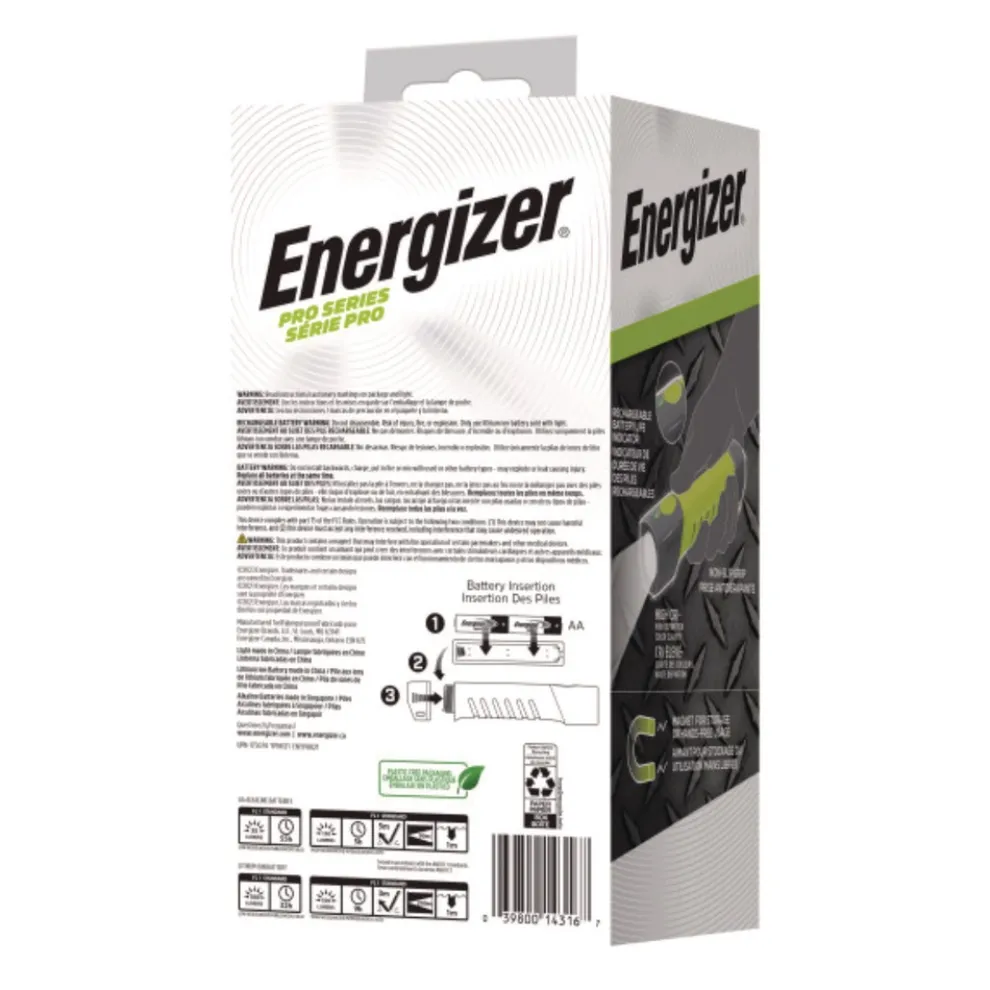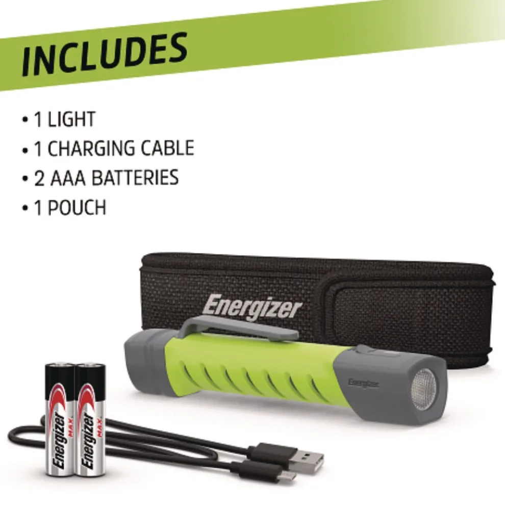 A new range of quality, professional grade lights designed with performance, flexibility and durability to meet tough standards and demands while on the job! Energizer Pro series lights have powerful LED technology that includes high CRI for high definition color clarity. The Energizer Pro Series high CRI flashlight provides the flexibility of hybrid power to ensure you always have power and light when you need it! This series of lights is durable, waterproof, and dustproof (IP67) to withstand demanding conditions. The anti-roll design provides a solid base for hands free operation or storage and a large push button switch that is easy to use with gloves on. The comfortable nonslip grip handle makes it easy to carry. Plus, a pouch is included to attach to your belt while easily storing your light, batteries, cartridge and charging cable all in one place!