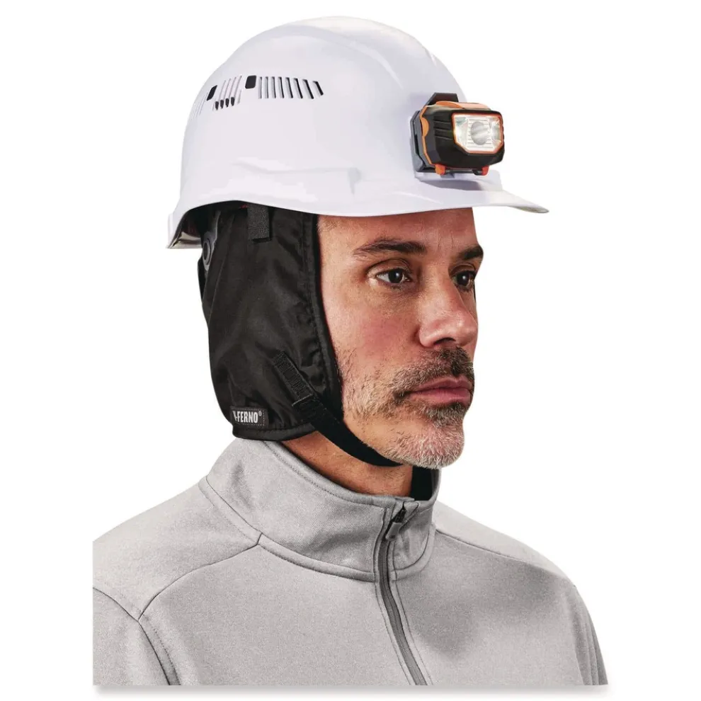 The N-Ferno 6840 Winter Hard Hat Liner features two layers of insulation, with a water-resistant shell and soft polyester fleece lining for comfortable warmth. This lightweight chin-length thermal liner keeps head and ears covered while fitting comfortably under helmets or hard hats without bulk. The PU-coated polyester shell is water-resistant with a durable finish that resists corrosion and abrasion. The 100% polyester fleece lining is incredibly soft for comfortable all-day wear. A hook and loop chin strap comfortably secures this winter liner, while four exterior hook and loop straps securely attach to hard hat suspensions for warmth on the jobsite. An elastic rim on the forehead keeps the liner snug to trap heat and keep cold out. This winter liner is ideal for those requiring head protection while working in construction, freight, mining and more. Can also be worn under recreational helmets for weekend activities such as skiing, snowboarding or snowmobiling.