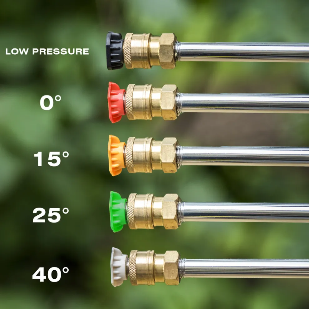 Ergonomic spray wand with quick-connect nozzle tip: 5 quick-connect nozzles are color-coded for multiple cleaning applications