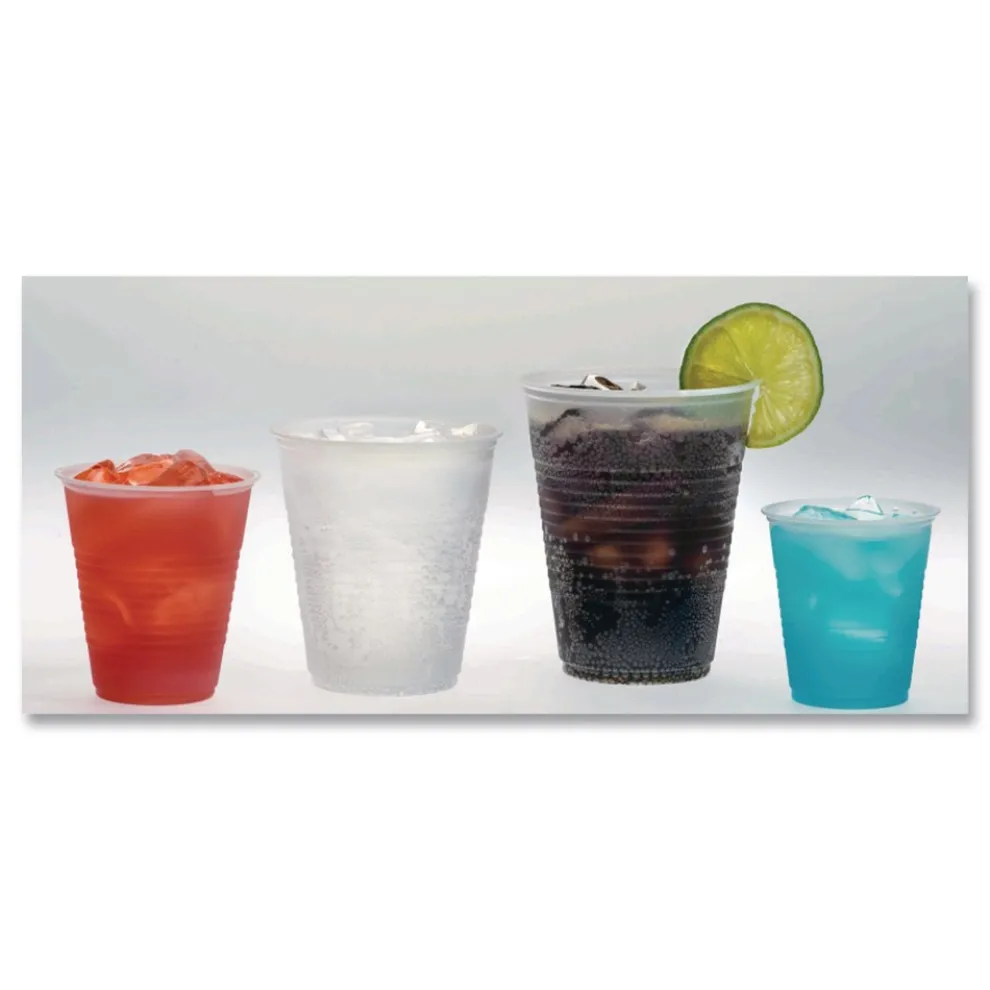 Lightweight plastic cups feature attractive, strength-enhancing sidewall ribbing. Embossed capacity marks enable quick, accurate and consistent fountain filling. Printable surface provides opportunities for custom branding and fill identification. High-quality polystyrene construction eliminates the potential for flavor and odor transfer. Smooth-rolled rims accommodate lid-free sipping. Leak-resistant, snap-tight lids (sold separately, unless otherwise noted).