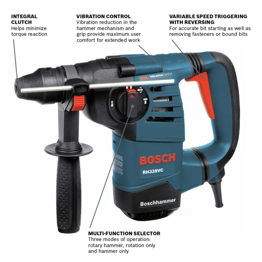 The Bosch RH328VC-RT 1-1/8 in. SDS-plus Rotary Hammer offers the ideal combination of power, impact energy, drilling speed and comfort. It features vibration control for superior performance and has an excellent power to weight ratio for fast chiseling and drilling.It has the fastest chiseling and drilling in its class. In. addition, it provides the longest life, with lowest vibration levels.