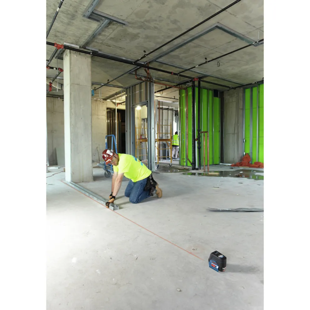 The Bosch GCL100-80C-RT 12V max connected cross-line laser with plumb points delivers all-in-one versatility, with highly visible lines and points. They provide horizontal level, vertical alignment and plumb point transfer applications. The tool features Bosch-exclusive visi-max technology, which monitors tool temperature and power consumption to deliver the brightest line for the job. The laser features Bosch 12V max Lithium-Ion power for extended laser runtime during complex or all day layout jobs, provides a visible range of 100 ft. and can work with an optional Bosch laser receiver to extend that range to 165 ft. The Smart Pendulum system self-levels up to +/-4 degrees, indicates out-of-level condition and locks for safe tool transport. The manual mode locks lines for use at any angle. The laser comes with the RPM 2 magnetic rotating mount that rotates 360 degrees, has a micro-fine adjustment knob and includes a ceiling grid clip.