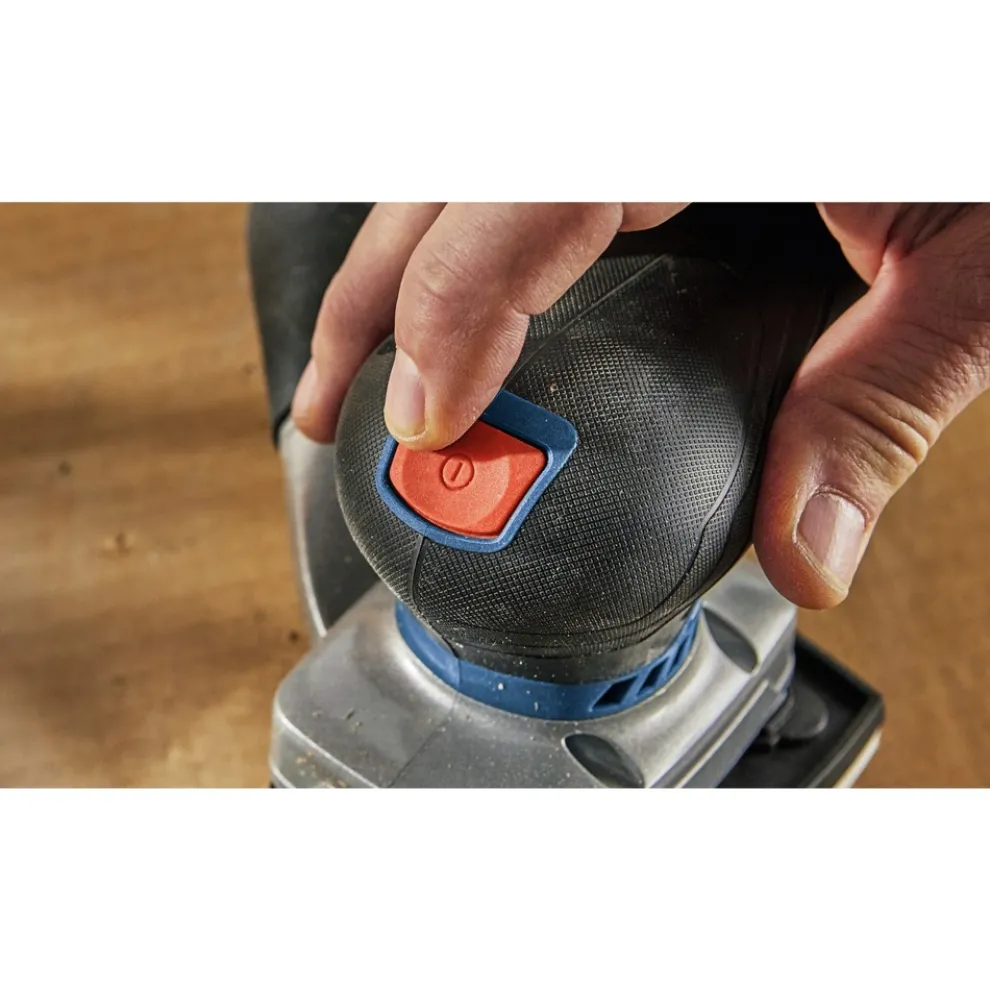 This Bosch 18V Sheet Orbital Finishing Sander delivers freedom from a cord and maximum tool control. The GSS18V-40 features a well-balanced ergonomic grip, designed to keep the hand close to the workpiece for additional control. The powerful motor provides a high rate of stock and material removal, delivering corded-like power. The 18V brushless motor also provides extended runtime, allowing the user to sand in tight, hard-to-reach areas without having to fumble over a cord over the shoulder or arm. The orbital sander handles a variety of sanding applications. The sander has interchangeable sanding plates, allowing 1/4 sheet, 1/3 sheet and detail sanding, for ultimate control and versatility. The included dust bag allows mobile dust collection, while the tool has an interface for vacuum hose attachment. The tool features soft-start technology, constant speed, a speed selector, a hook-and-loop backing pad and an easy-to-reach on/off switch.