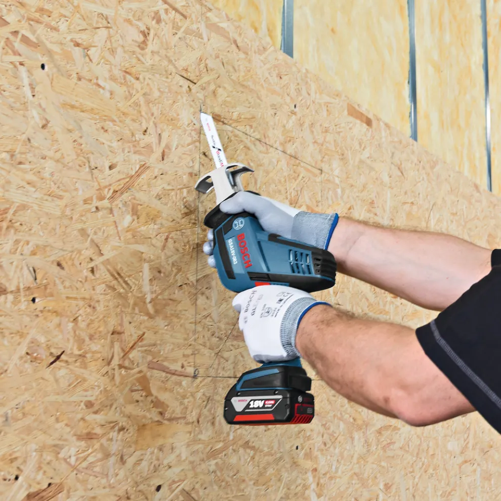 Cut in the tightest of areas – At only 15-3/4 In. long and weighing only 4.4 Lbs. (tool only, not including battery), the Bosch GSA18V-083 features a compact design. This allows users to cut through tough material in the tightest of areas. Users will be able to get the saw in the best position for cutting conduit or making pocket cuts.