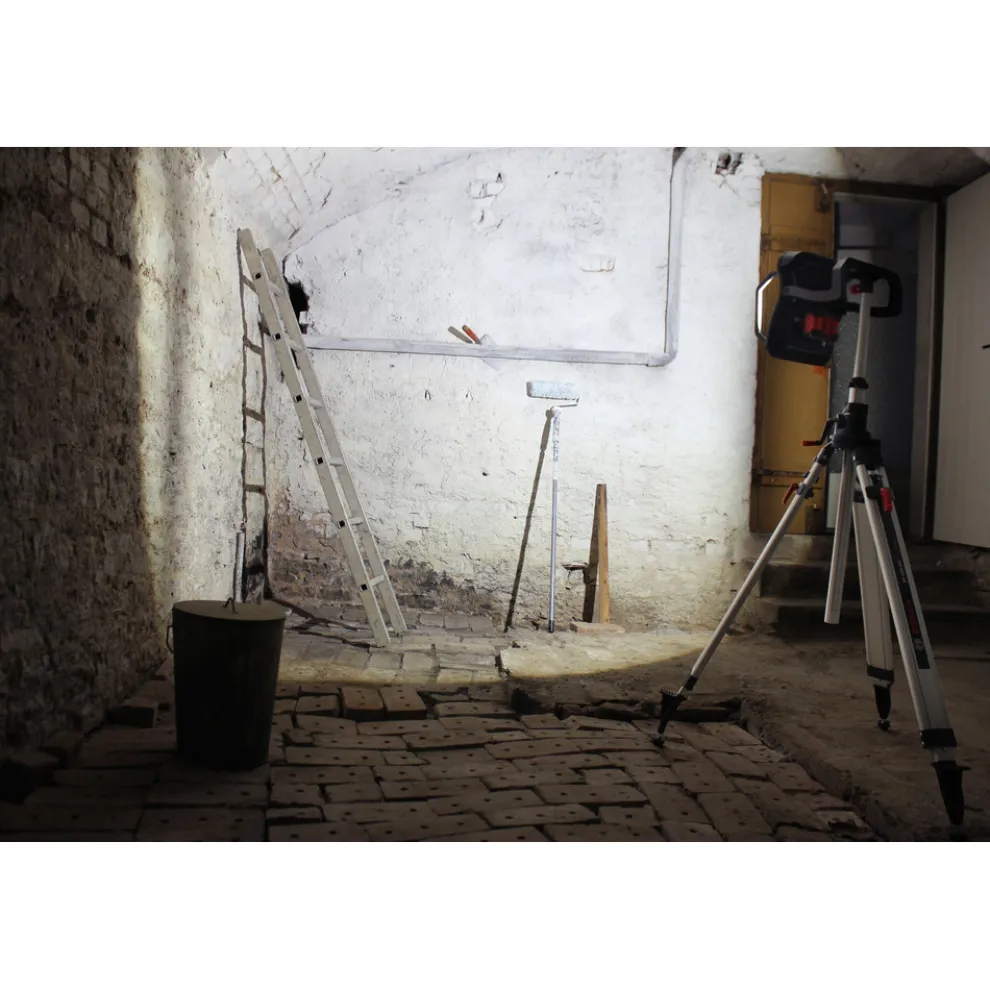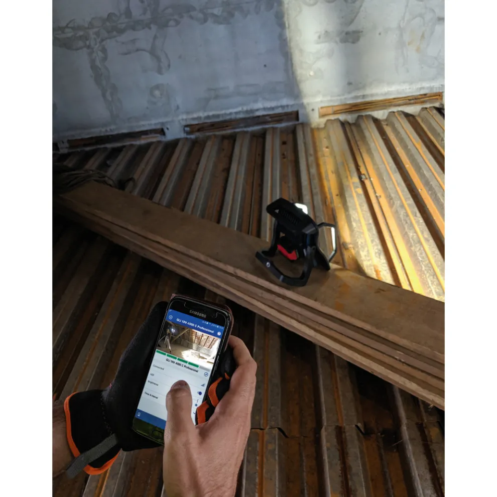 This Cordless, Portable Floodlight with Bluetooth provides high-powered brightness, with 4000 lumens, which can light up a large jobsite. The Bosch GLI18V-4000C 18V Floodlight features Bluetooth connectivity and outstanding runtime. The Toolbox App connects to the GLI18V-4000C with Bluetooth, to control the floodlight’s operation. Users can turn the light on and off remotely. They can dim the light, set it on a timer, check the battery status, and control groups of lights using a mobile device. It also has a user interface, for battery and brightness status. There are three brightness settings (4000, 2000 and 1000 lumens), with corresponding adjustments in runtime. The light delivers great runtime provided by rechargeable Bosch 18V batteries (not included). The light provides 30 minutes per battery Amp-hour at 4000 lumens and up to 120 minutes per amp hour at the lowest setting. Built with a solid metal body, the floodlight two heavy-duty bars, which help to guard the LED from impact. The light has an adjustable stand for versatile positioning, a 5/8 in.-11 thread mount. This is a bare tool; the battery and charger are sold separately.