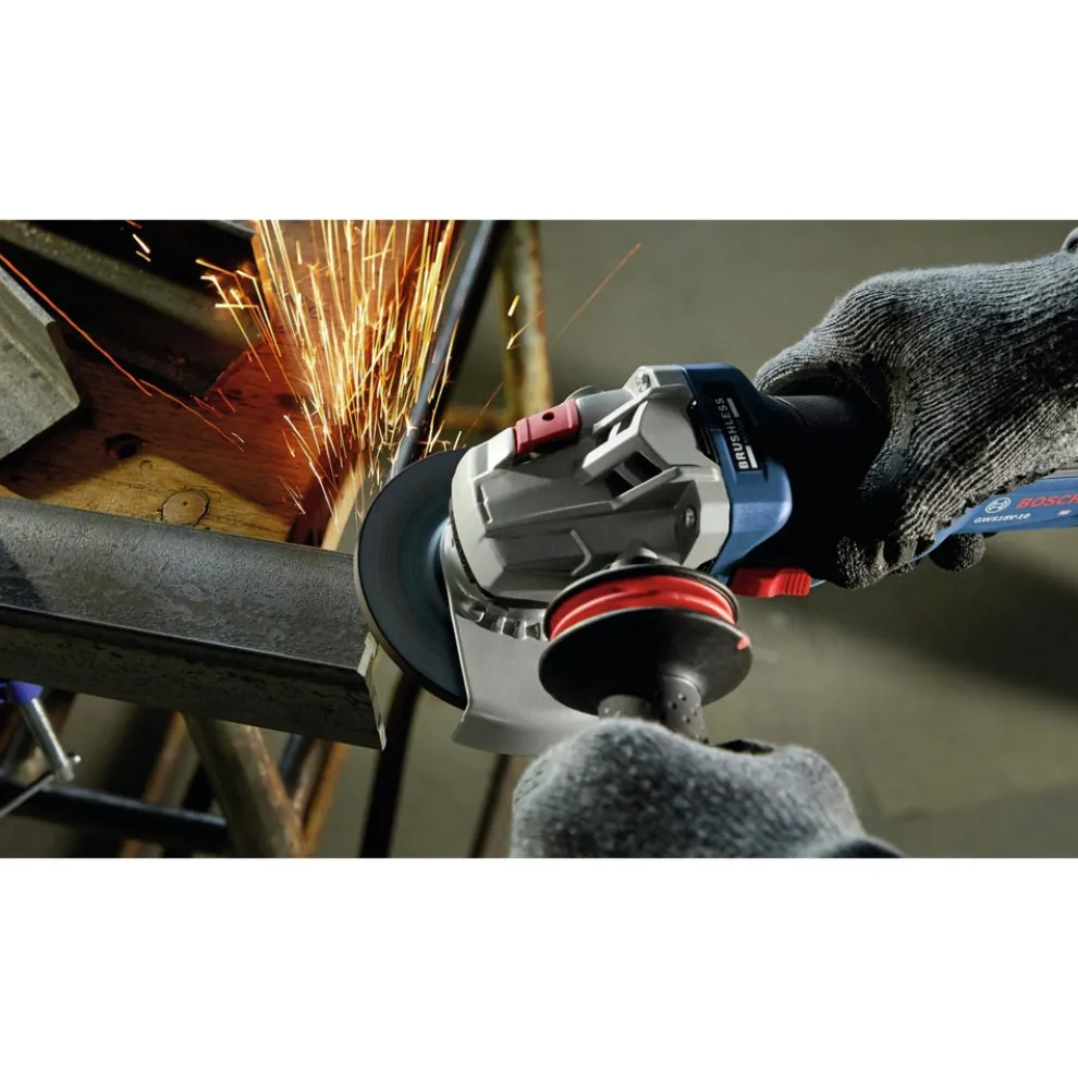 The Bosch GWS18V-10N 18V Brushless 4-1/2 – 5 in. Angle Grinder is an ergonomic, robust grinder that is engineered with a narrow grip zone for best user comfort and considerable power. It delivers the ultimate combination of performance, control, and power in a cordless grinder. The grinder’s brushless motor provides power equivalent to a 10-amp corded grinder and greater efficiency that maximizes runtime and productivity. The grinder has a brake system, which helps provide a rapid stop of the wheel when the switch is turned off. It also includes other advanced electronics such as drop control, KickBack Control, restart protection, and constant electronics for constant speed under load. It has a lock-on/off slide switch for extended-use applications and an updated gearhead mounting collar that’s now compatible with all Bosch metal and concrete guards.