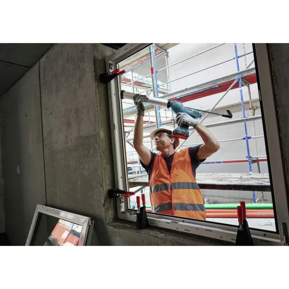 The Bosch GCG18V-20-RT 18V Caulk and Adhesive Gun provides powered caulking to reduce the fatigue on your hand from manual caulk and adhesive guns. It has speed selection and a variable-speed trigger for a consistent bead size and easier caulk application. The caulk and adhesive gun features an auto-reverse feature on the plunger rod to help prevent dripping and material overflow. It delivers a no-load max of 21 in. per minute feed and 790 lbs. of push force, to push even high-viscosity adhesives including anchor adhesives in concrete. The gun rotates, so that material can be applied in difficult areas while still keeping your preferred hand location. And it’s light – only 4.9 lbs. (tool only, not including battery). It is compatible with Bosch 18V Lithium-Ion batteries, and it fits multiple sizes of tubes and sausage packs. The caulk gun has a hook for hanging between jobs and a lockout switch, to the trigger won’t be accidentally activated.
