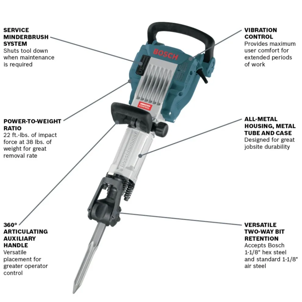 Impact force of 34 ft.-lbs. and powerful 1,750 Watt motor – fastest removal rate in its class – up to 35% faster