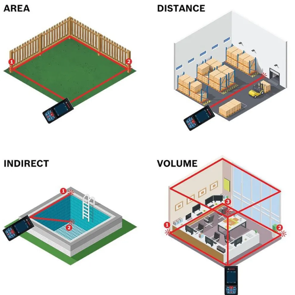 The Bosch BLAZE Outdoor GLM400CL-RT Connected Laser Measure with Camera features a 5.0-megapixel, adjustable zoom camera to find the laser spot in bright conditions, measuring up to 400 ft. Transfer the measurement documentation to a smartphone or tablet with Bluetooth using Bosch’s MeasureOn app. The outdoor laser measuring device provides default real-time length, length, area, volume and indirect measuring functions – which are simple to take advantage of thanks to the display guide walking through each measurement process. A built-in inclinometer determines the angle of pitch and confirms when the tool is level. The laser measure also features an easy-to-read backlit color display, reinforced screen glass, an easy-to-use display guide and 11 measuring functions (including default real-time measuring). It allows users to see the last 50 measurements on the tool and stores over to 600 images.