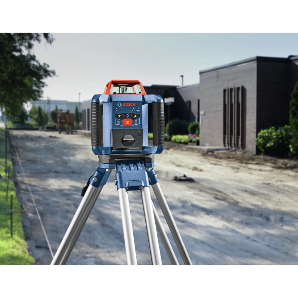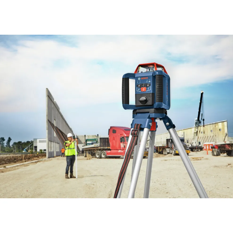 The Bosch REVOLVE2000 Self-Leveling Horizontal/Vertical Rotary Laser Kit delivers a comprehensive solution for precise outdoor and indoor leveling. Manual Dual Slope allows the user to adjust the slope angle on the laser on both the X- and Y-axes. The GRL2000-40HVK-RT features a horizontal/ vertical self-leveling laser, suitable for leveling and aligning applications. This kit contains an all-in-one hard carrying case designed to hold all included accessories. The REVOLVE2000 rotary laser delivers +/- 1/16 in. accuracy at 100 ft. and a working range of up to 2000 ft. with the included receiver. The laser’s electronic self-leveling system has a disturbance monitor, which indicates to the user if tool position changes, ensuring consistent leveling accuracy on the jobsite. The laser has a red metal cage for durability. Easy to use, the kit includes an all-in-one solution includes an LR20 laser receiver with mounting bracket, aluminum tripod, RC4 remote control, WM4 wall mount and sturdy grade rod.