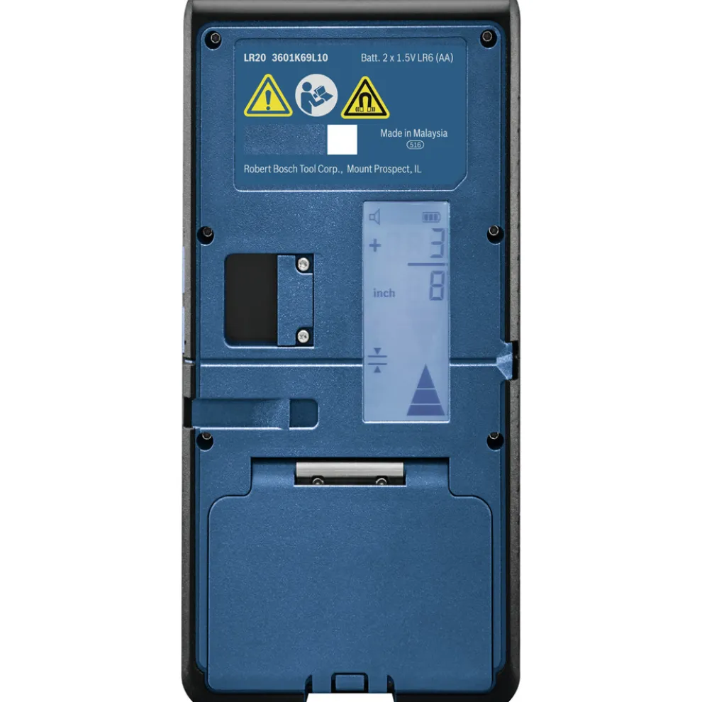Laser receiver with mounting bracket – allows for easy-to-read LCD dual display and easy attachment to leveling rod