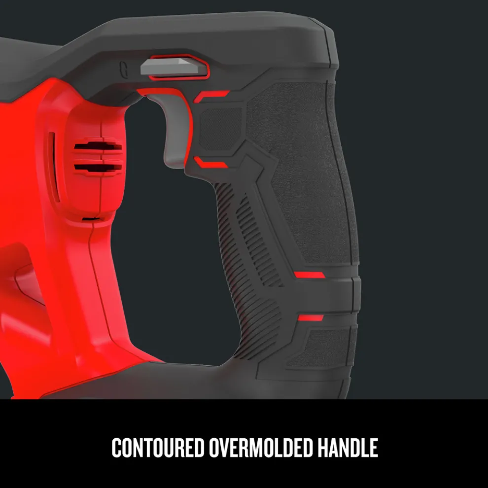 20V Cordless Reciprocating Saw has a powerful high performance for increased speed of application. The variable speed trigger provides optimal control while the tool-free blade release makes for quick and effortless blade changes. A contoured over-molded handle and compact design allows the user to make cuts in tight places minimizing user fatigue.