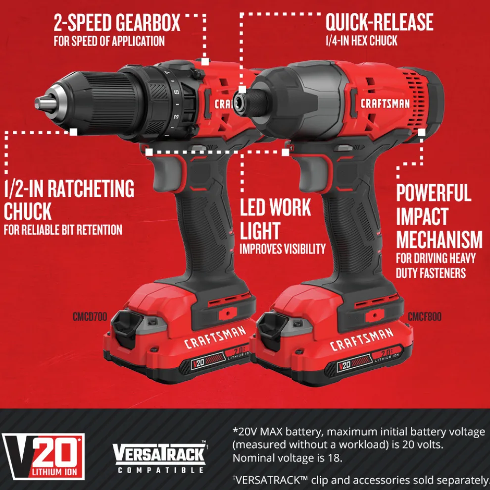 Factory Reconditioned Craftsman CMCK400D2R 20V Lithium-Ion Cordless 4-Tool Combo Kit (2 Ah)