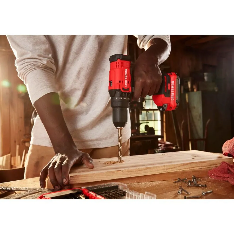 Factory Reconditioned Craftsman CMCK200C2R 20V Variable Speed Lithium-Ion 1/2 in. Cordless Drill Driver and 1/4 in. Impact Driver Combo Kit (1.3 Ah)
