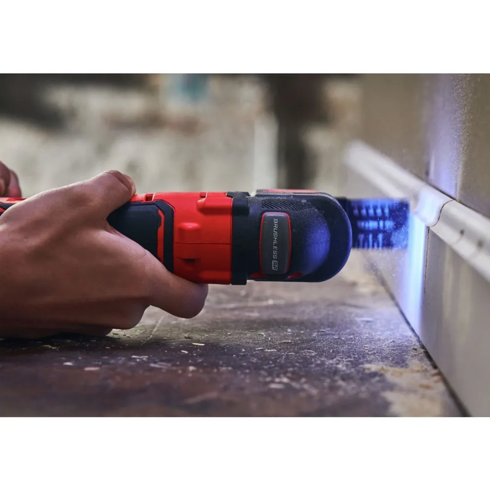 Quickly adjust and switch attachments while working with the high-efficiency V20 BRUSHLESS RP Cordless Oscillating Tool, which features a tool-free accessory change system. Trim pipes, wood, screws, and floorboards, plunge cuts in your decking, and cut through drywall with this multi-use power tool. Built with the user in mind, the variable speed trigger offers control across a variety of applications and materials while the integrated LED work light offers visibility in dark workspaces. The oscillating tool is compatible with the VERSATRACK system (clips and accessories sold separately) and offers the versatility professionals need to tackle a range of jobs. Battery sold separately.