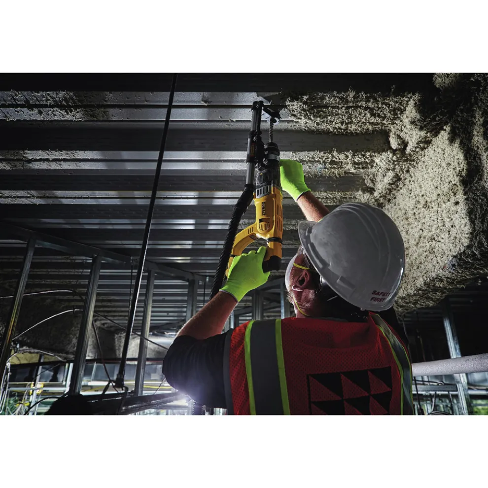 With an 8.5 Amp high performance motor, DeWalt’s 1-1/8 in. SDS D-Handle Rotary Hammer packs 3.0 Joules of impact energy for fast drilling and chipping speed. Its rotating brush ring delivers full torque in forward and reverse and the handles have a vibration regulation mechanism, resulting in maximized comfort while working.