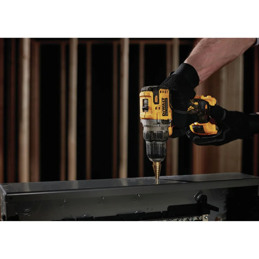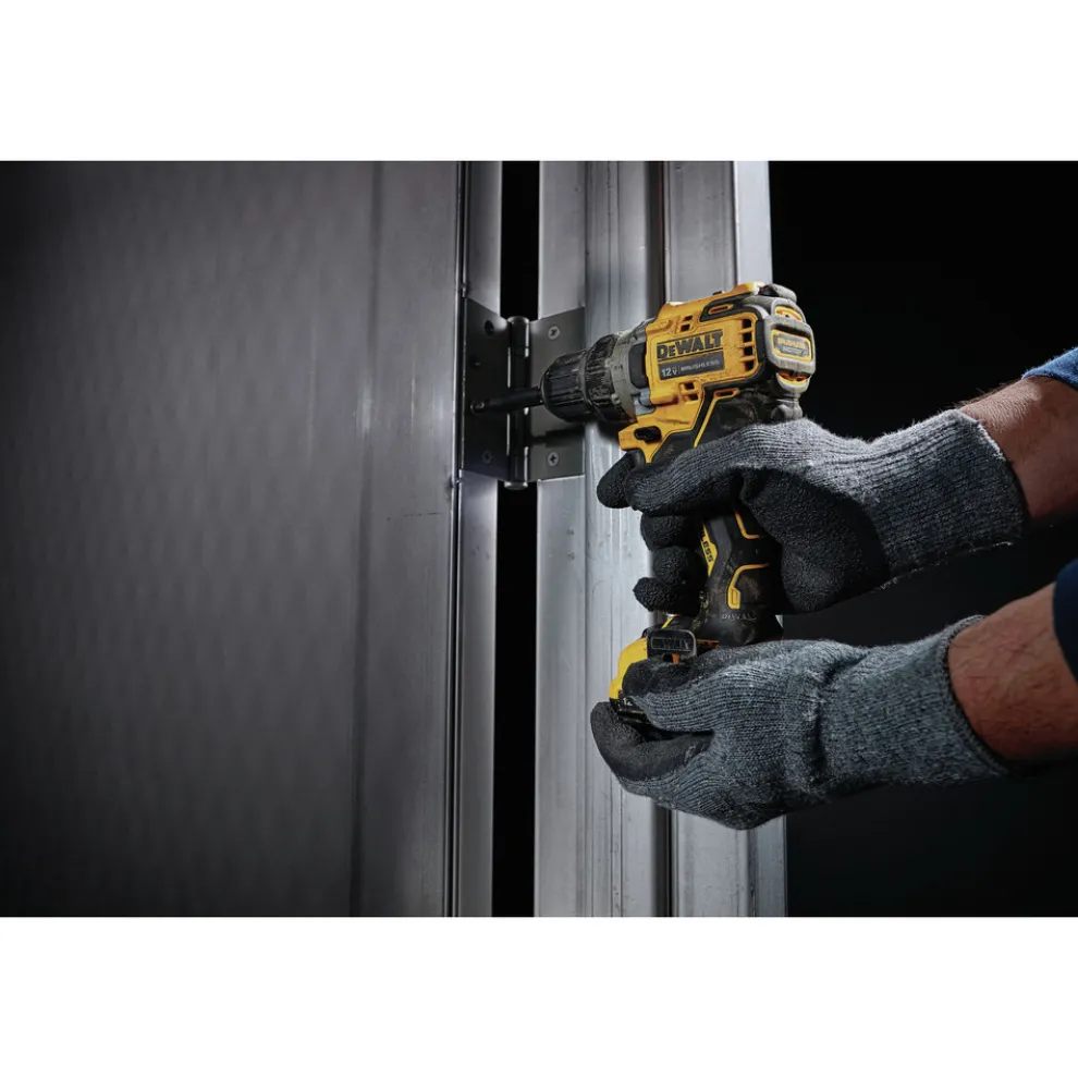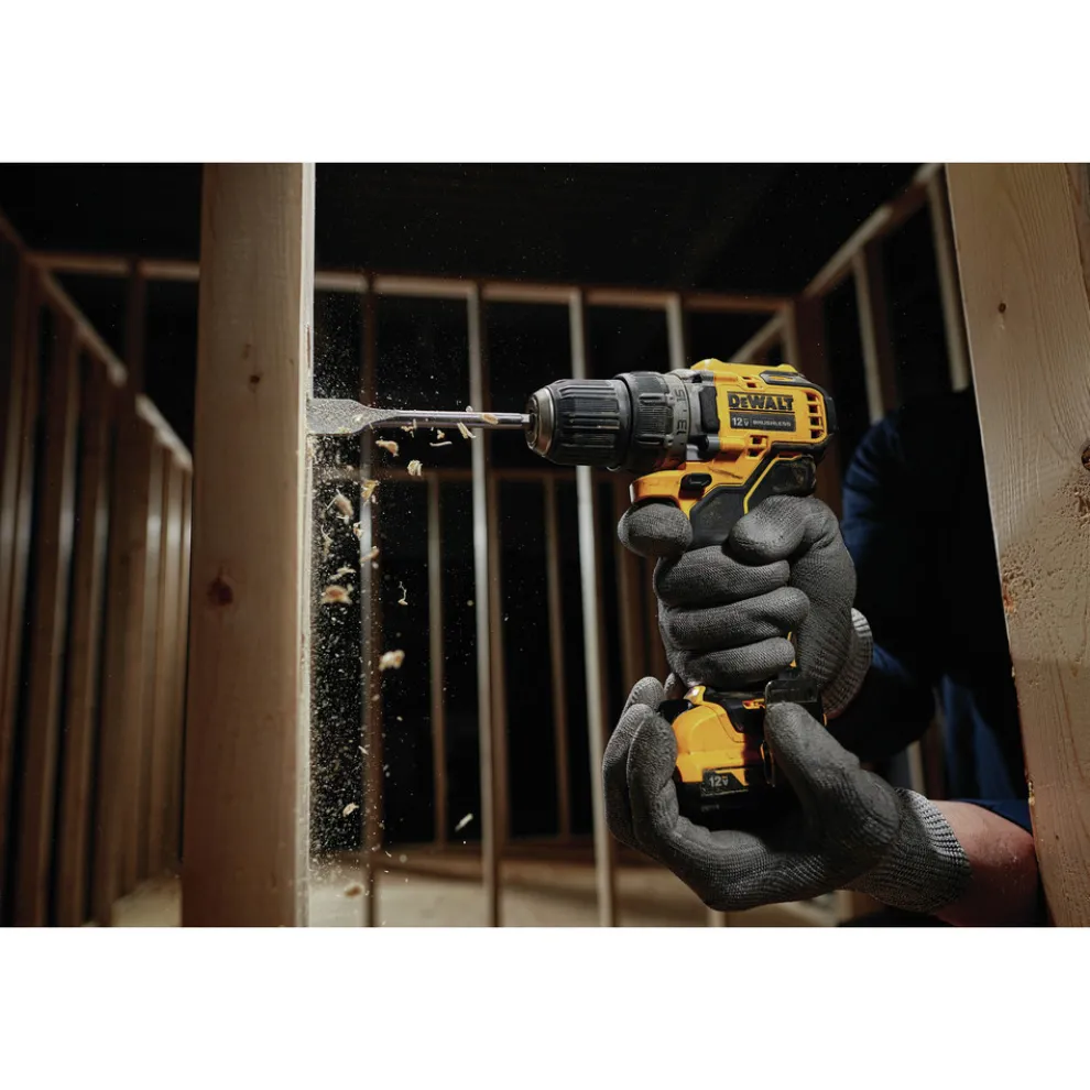 The DCD701R XTREME 12V MAX Brushless 3/8 in. Cordless Drill Driver Kit is compact and performance packed. This drill is ideal for precision applications like drilling small pilot holes. It can also can accept up to a 1/2 in. spade bit. At only 5.97 in. long, it is packed to perform with a 2-Speed transmission. It also features a bright LED positioned light on the foot to illuminate work areas.