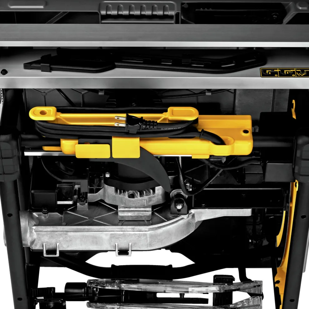 The DeWalt 10 in. 15 Amp Site-Pro Compact Jobsite Table Saw boasts best-in-class accuracy and capacity. Thanks to the new transmission design which delivers more power efficiently to the blade and improves runtime. The saw is equipped with a powerful 15 amp 4,800 RPM motor and rips through hardwood with ease. It also features DeWalt’s Site-Pro Modular Guarding System, a unique system that enhances visibility and versatility by allowing the user to quickly adjust the guarding components appropriate for each application. Featuring a Rack and Pinion telescoping fence, users can expect class-leading accuracy with every cut as well as an extended rip capacity, all without impacting the light weight and compact size of the table saw. The added rolling stand increases portability on the jobsite.