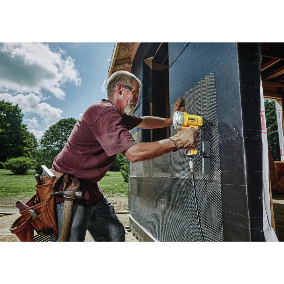 Reliable performance, the DW451S2 16-Gauge Wide Crown Lathing Stapler offers an array of features. Equipt with a tool-free jam release mechanism for easy staple removal and an adjustable depth guide for precise setting of fasteners. The DW451S2’s compact lightweight design helps reduce fatigue during extended use. The rubber grip provides comfort and control.