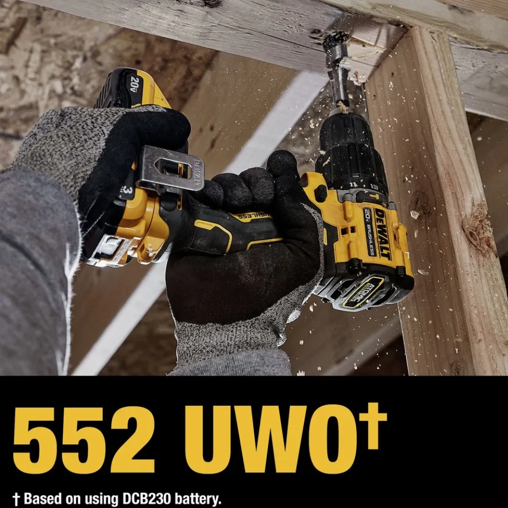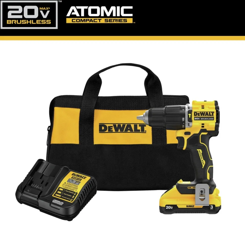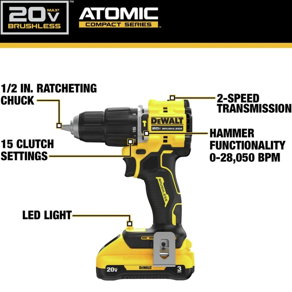 Unlock power for tough masonry drilling applications with the ATOMIC 20V MAX 1/2 in. hammer drill. This compact hammer drill delivers up to 552 UWO so you can maintain productivity in tight areas. For user convenience, this kit includes one (1) 20V MAX 3 Ah battery, a charger, and a durable storage bag for portability on the jobsite.