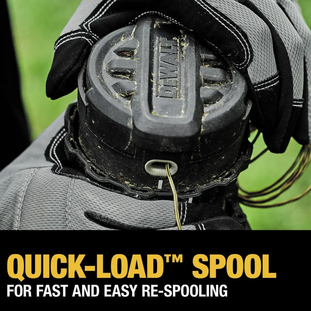 The 20V MAX 14 in. String Trimmer features an innovative folding hinge mechanism that reduces the length by 41% for accessible storage and quick portability. The QuickLoad Spool allows for fast and easy line replacement of 0.080 in. line. The 14 in. swath gives a large cutting radius for knocking down wide sections of overgrowth in one pass. The variable speed trigger offers precise power control, as well as performance and runtime management with the Hi/Lo speed control switch.