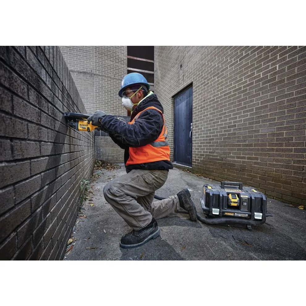 Our most powerful tools just got better with the FLEXVOLT 60V MAX 4-1/2 in. – 6 in. Grinder. It has up to 30% more power than the DCG414 60V MAX Grinder with 2300 unit watts out. This grinder delivers 13 Amp power with a no-load speed of 9000 RPM. It’s part of our PERFORM and PROTECT product line to help keep users safe. The Kickback Brake engages when a pinch, stall, or bind-up event is sensed and shuts the grinder off. Battery and charger sold separately.