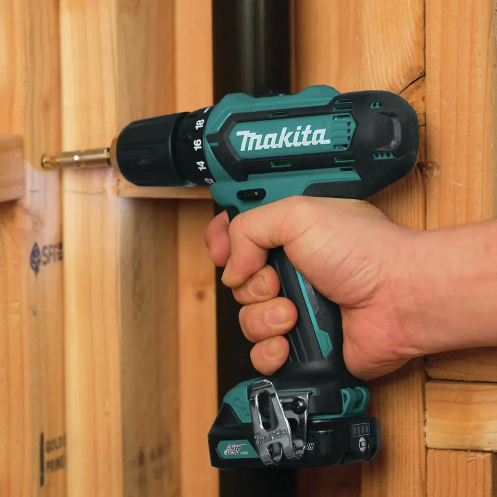 The Makita FD05R1 12V MAX CXT 2 Ah Cordless Lithium-Ion 3/8 in. Drill Driver Kit delivers power and speed in an ultra-compact size for drilling, driving and fastening applications. The kit includes (2) 12V MAX CXT Lithium-Ion slide-style batteries for improved balance and ergonomics over pod-style batteries. For added convenience the batteries include an on-board LED charge level indicator.