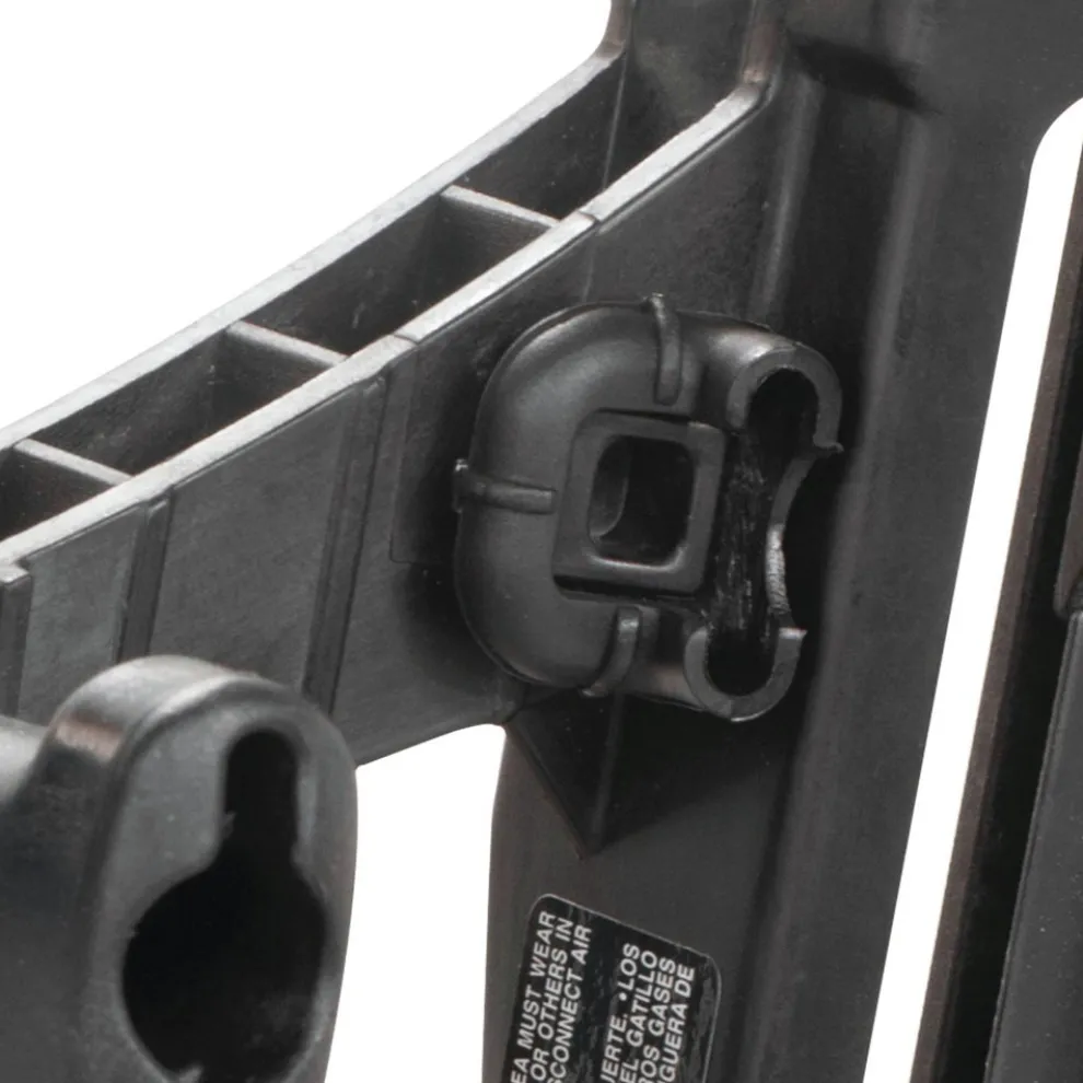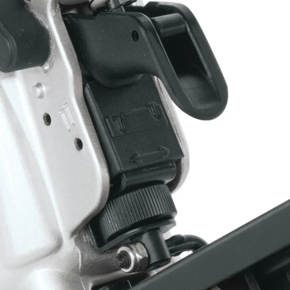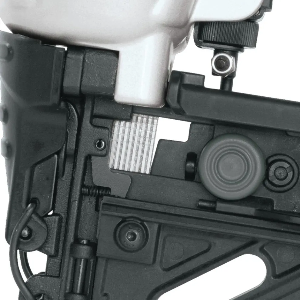 Combines a myriad of features and powerful performance in a compact size. Rear-loading magazine that accepts standard 16 ga. straight finish nails sized 1 in. to 2-1/2 in. The nail lock-out and large windows alert the user when to reload nails as the contact arm and trigger are used together for controlled firing. With a compact size and weighing in at only 3.8 lbs., the AF601-R was engineered for all-day professional use. Additional convenience features include a reversible belt hook that allows the tool to remain close by, a multi-directional exhaust port that directs exhaust air away from the user, a built-in air duster that provides convenient air flow to clear your workspace, and a 2-mode selector switch offering quick control over nailing operation.