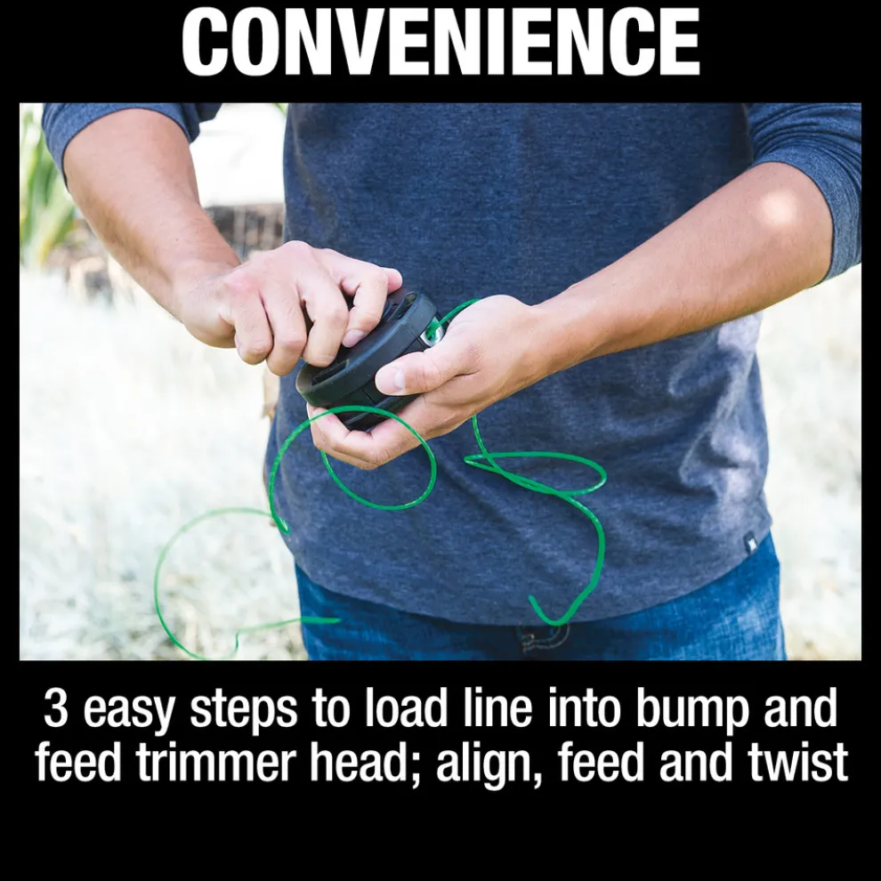 Rapid load bump and feed trimmer head line loads in seconds with 3 Easy steps: align, feed and twist