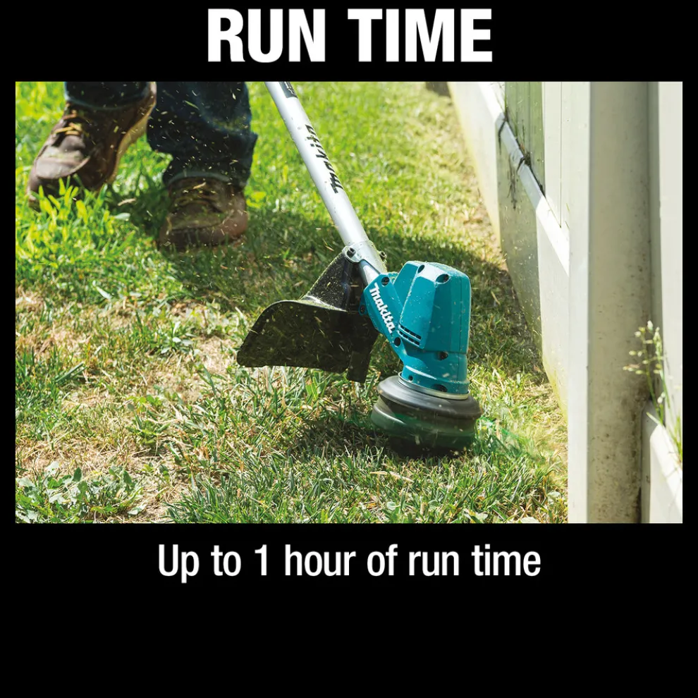 The 18V LXT Brushless Cordless String Trimmer Kit (XRU23SM1-R) is a welcome solution for landscapers. The string trimmer is ideal for precision trimming and edging. It features an efficient Makita-built brushless motor for longer run time, increased power and speed, and longer tool life. The efficient brushless motor delivers up to 6000 RPM for faster cutting. The trimmer delivers up to 1 our of run time when using an 18V LXT 4.0 Ah Battery. It features a variable speed trigger to control cutting speed and a high/low button to manage power and run time. The rapid load bump-and-feed trimmer head is loads line in seconds with 3 Easy steps.