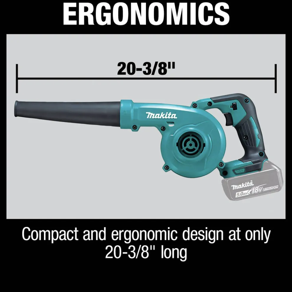The Makita 18V LXT Lithium-Ion Cordless Blower (XBU05Z, tool only) is a go-to clean-up tool and a favorite on job sites and in workshops. It seamlessly combines the convenience of cordless with the superior power-to-weight ratio of Makita’s 18V LXT Lithium-Ion battery technology. The XBU05Z is the perfect addition to any kit, tool box or workshop.
