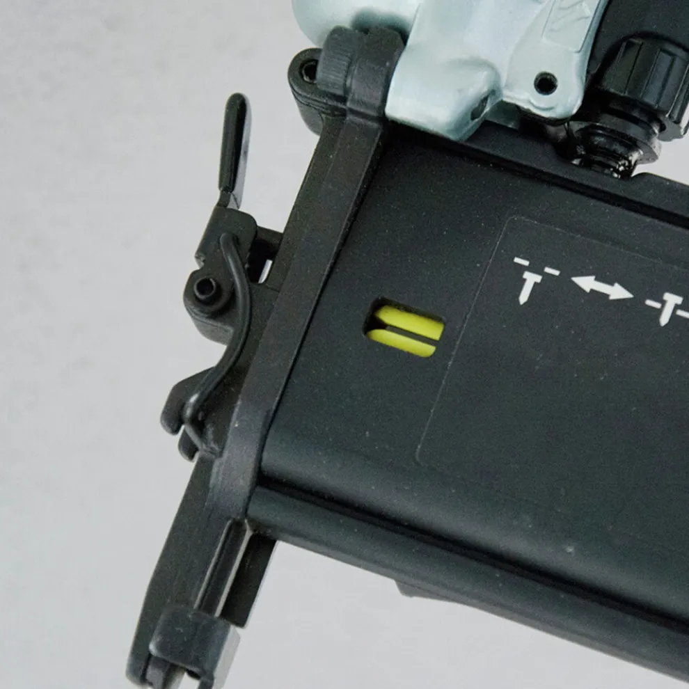 Visual nail reload indicator located on the magazine, alerts the user when nail quantities are low so that blank drives are avoided