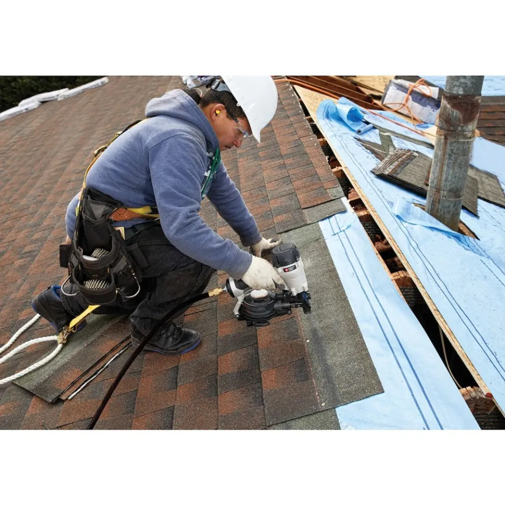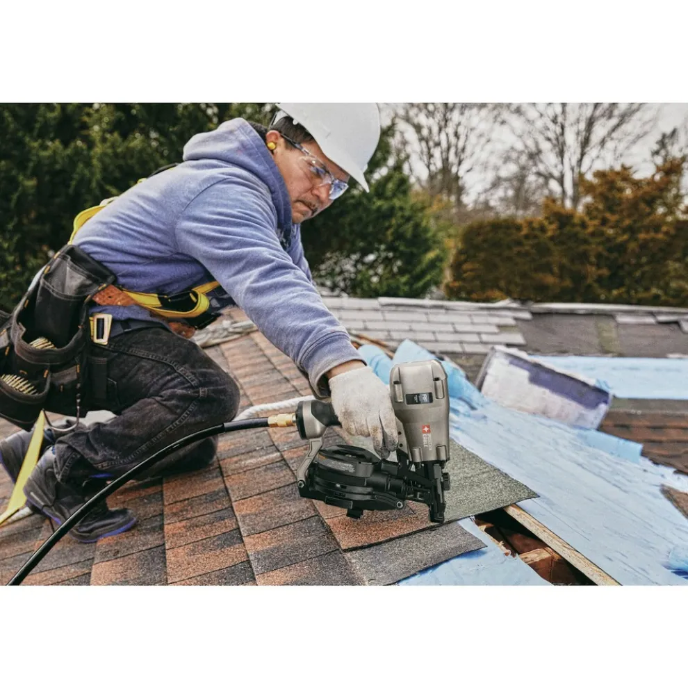 With a new engine design and feed system for improved performance and durablity, this 15-Degree Pneumatic Coil Roofing Nailer is your go-to for all-day jobs. It drives 3/4 to 1-3/4 in. nails to give you versatility across a variety of roofing applications. This lightweight roofing tool features great balance with improved ergonomics, including a new grip design, for a better overall user experience.