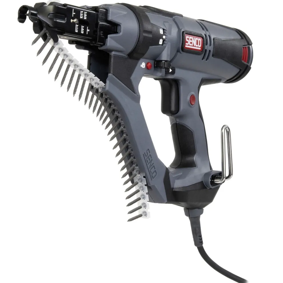 Blazing fast speed in a compact, well-balanced package provides the ultimate in performance and durability. The DS245-AC DURASPIN 120V High Speed 2 in. Corded Auto-Feed Screwdriver is equipped with a variable speed 5000 RPM motor designed for high-volume applications including drywall (into wood or light gauge steel studs), sheathing, cement board, and underlayment applications. SENCO’s patented corner-fit feed system allows placement of screws into tight places unreachable by other collated screwdrivers.