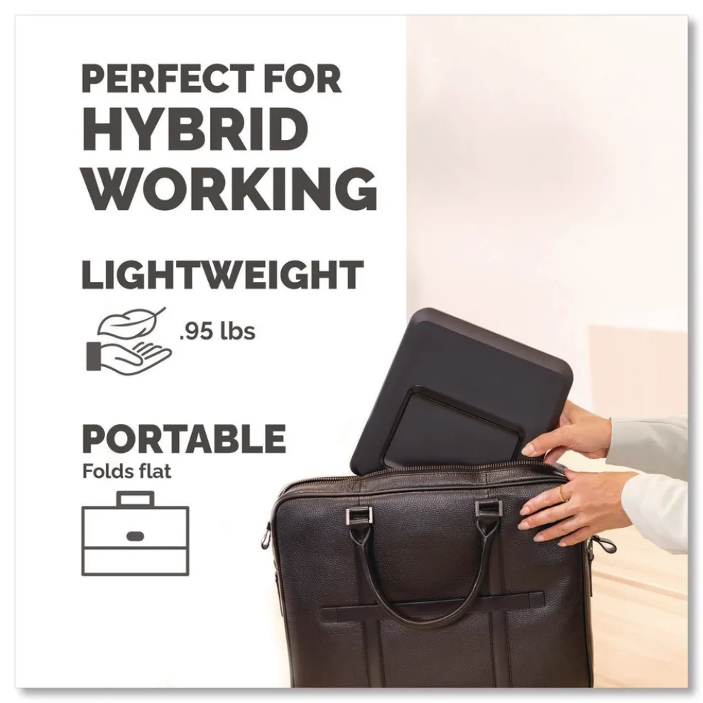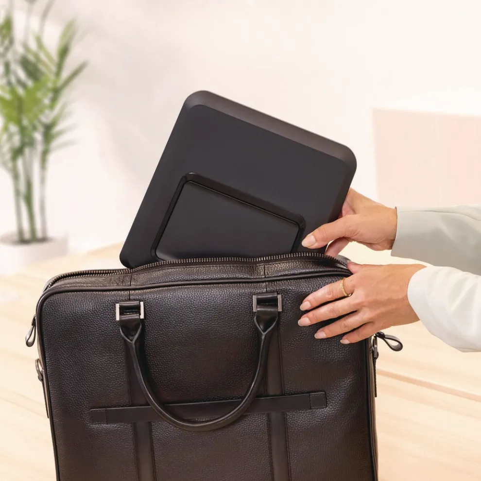 A compact portable design. Twelve height adjustments with unique front lift to provide additional height for ergonomic viewing comfort. Lightweight and portable design that is easy to set up and adjust: ideal for hybrid working. Holds up to 14 in. laptops weighing up to 8.8 lbs. Modern and simple design aesthetics. Made from materials which are 100% recyclable through our take-back program. Please contact Fellowes Customer Service for more information.