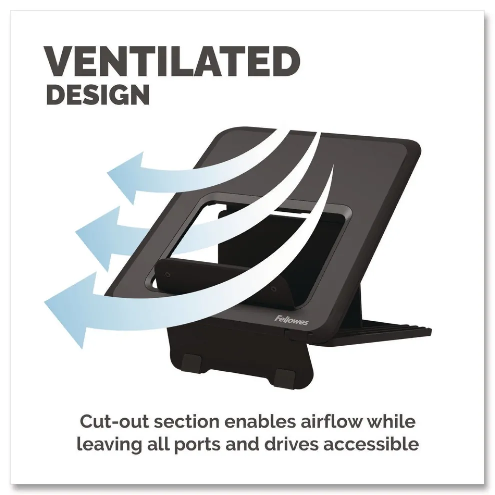 Fellowes Mfg Co. 100098500 9.25 in. x 10.55 in. x 0.55 in. to 8 in. Supports Up to 8.8 lbs. Breyta Laptop Stand – Black