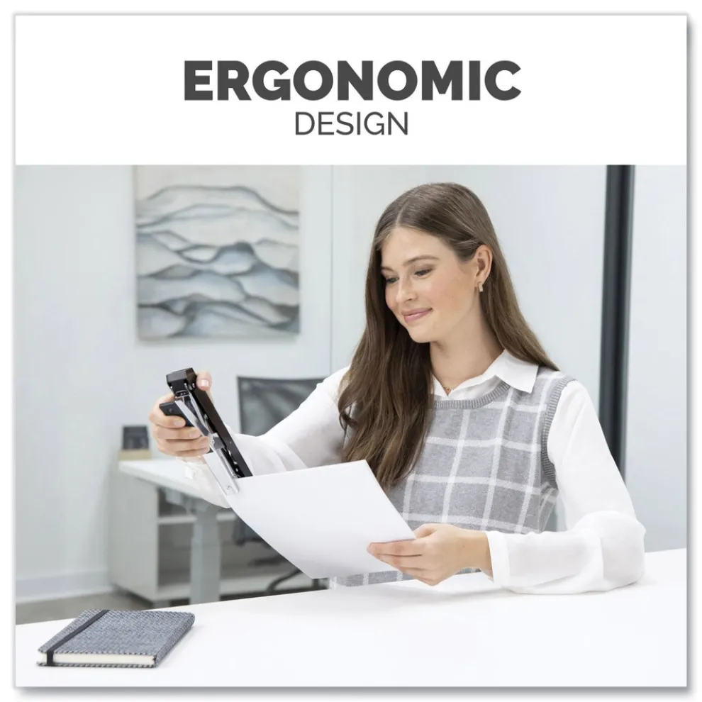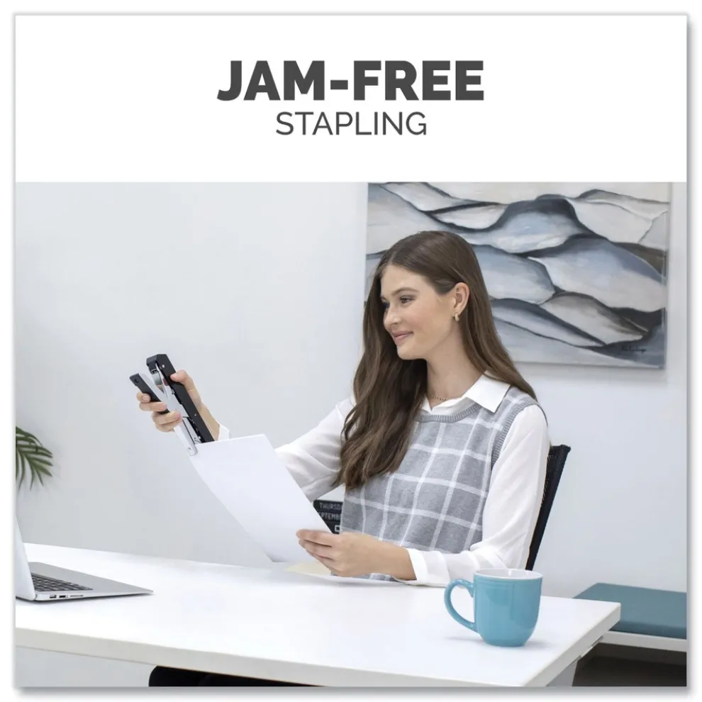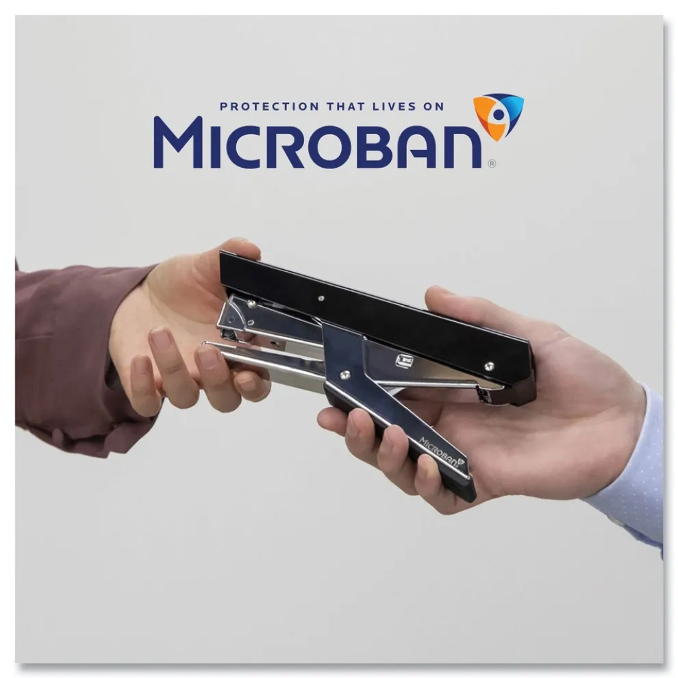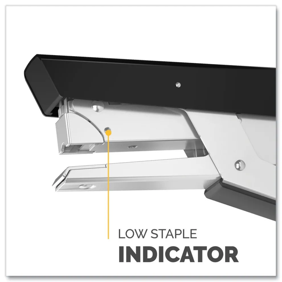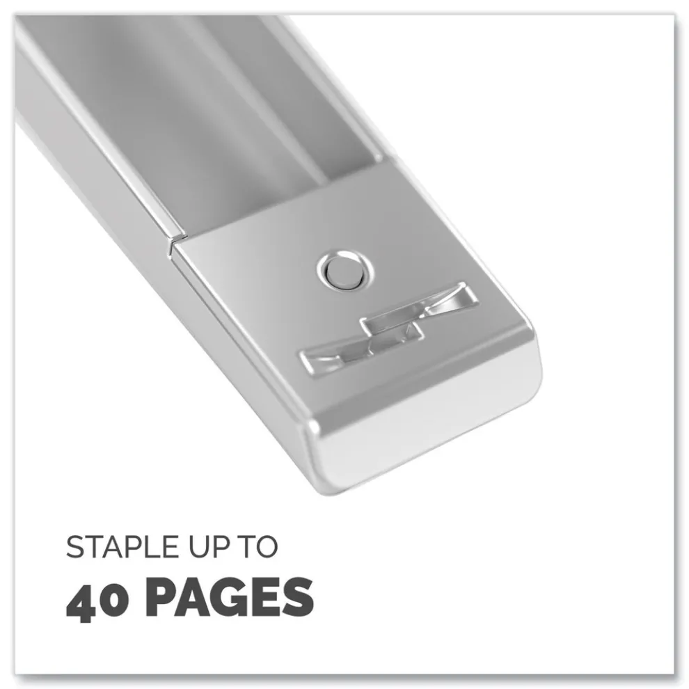 Treated with Microban Antimicrobial Technology to help prevent bacteria. Works 24/7 for an added level of product protection. Easily staple 40 sheets of paper. Smooth, jam-free performance ensures successful stapling every time. Staples two to 40 sheets with 0.31 in. staples. Stapler also works with 0.25 in. staples. Constructed with premium metal. Low staple indicator lets you quickly see when staples are running low. The comfort grip makes for smooth, easy stapling every time.