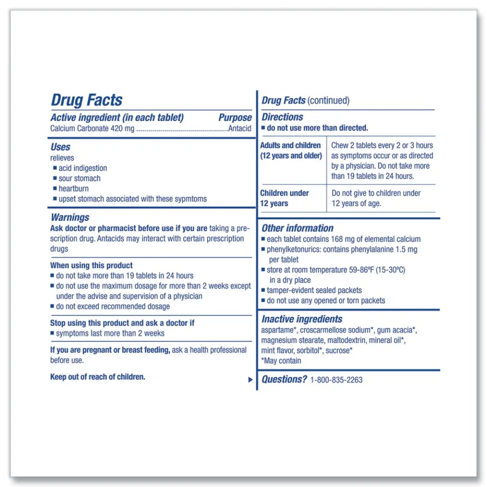 Over the counter antacid medication for first aid kits and cabinets and can be used as a standard supply as a standalone. Convenient dispenser.